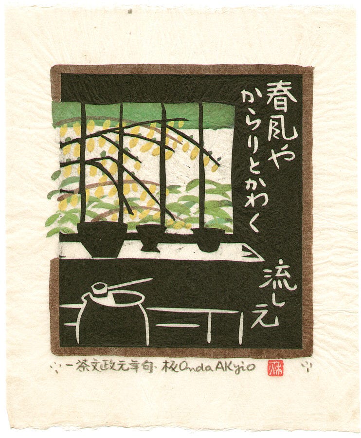 Picture: Japanese print Kitchen and the Spring Wind by Onda Akio, circa 1960s.